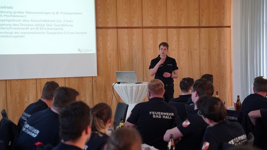 Der zentrale Teil der Ausbildung dreht sich um den Einsatz der Tragkraftspritze (TS). Das ist die mobile, benzinbetriebene Wasserpumpe, mit der beispielsweise im Brandeinsatz die Tanklöschfahrzeuge gespeist werden. Am Ende der Veranstaltung durften wir 44 frischen TS-Maschinistinnen und -Maschinisten zum erfolgreich abgeschlossenen Lehrgang gratulieren.